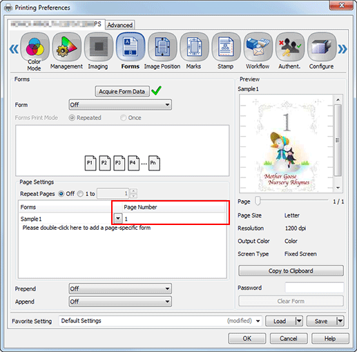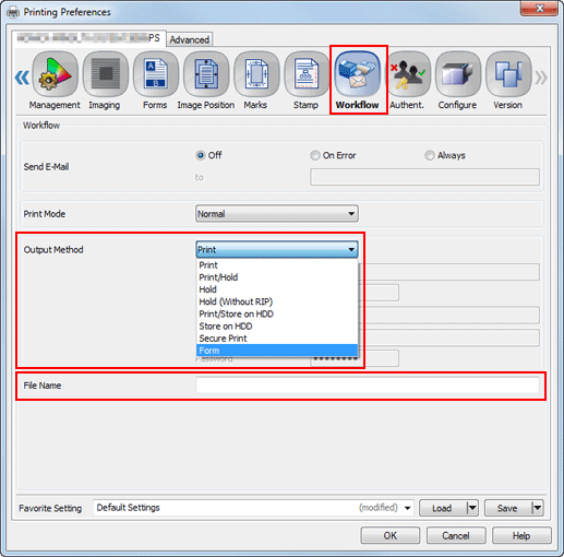 supplementary explanationTo name the selected form, enter the desired file name in File Name. If File Name is blank, the file name of the document to be printed is displayed.