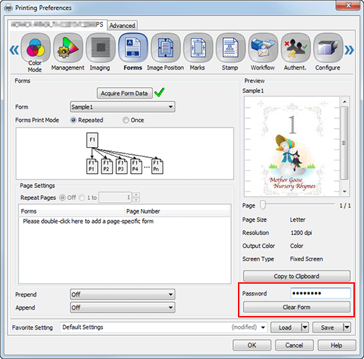 supplementary explanationFor the default password, refer to the Help of the printer driver.