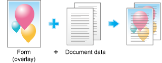This machine enables you to recall the desired form and print document data over the form (Superimposition).