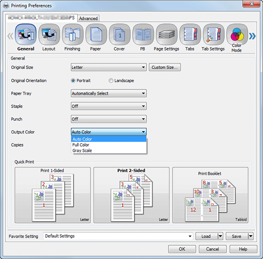 Full Color: Prints the original in color regardless of the color conversion result. When Full Color is selected, productivity is not reduced because the color mode is not switched for each process.