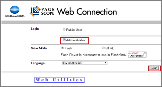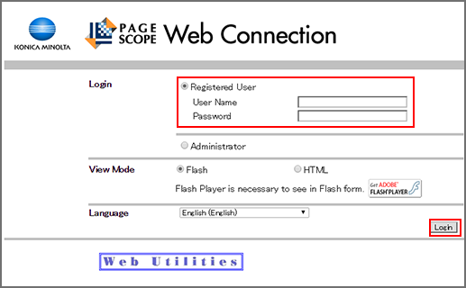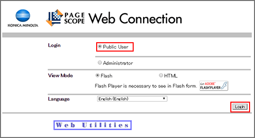 PageScope Web Connection provides the user or administrator mode depending on how to log in.