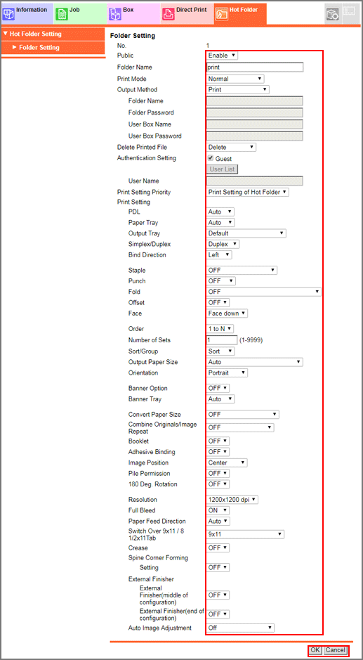 • If you access a folder immediately after changing its folder settings, an OS error screen may be displayed. In that case, wait approximately 10 seconds before accessing it again.