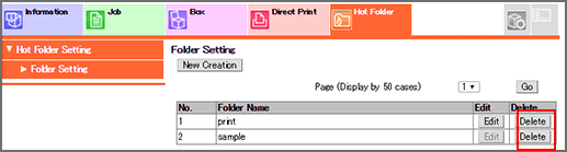2. Click OK on the confirmation screen. Click Cancel to cancel the deletion.