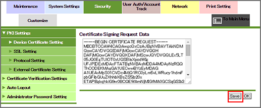• After the certificate has been issued from an external CA, you need to install it on this machine. For details, refer to Install a Certificate.