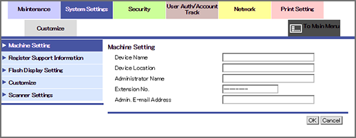 Click Machine Setting on the menu of System Settings tab to display this screen.