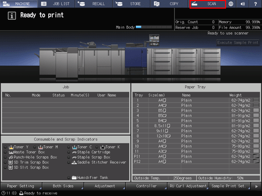 On the touch panel of the main body, press SCAN.