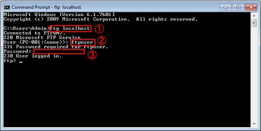 (1) Enter ftp localhost and press the Enter key.