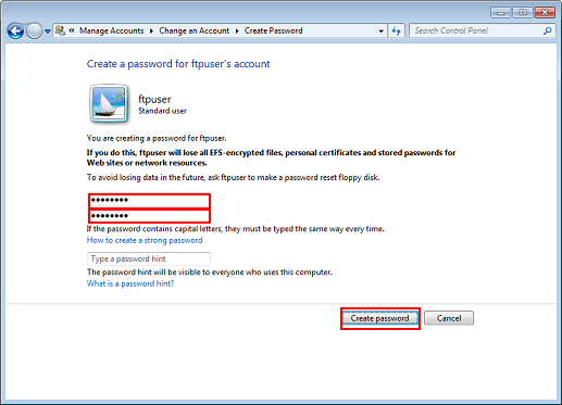 Enter a password and enter it again, and then click Create password.