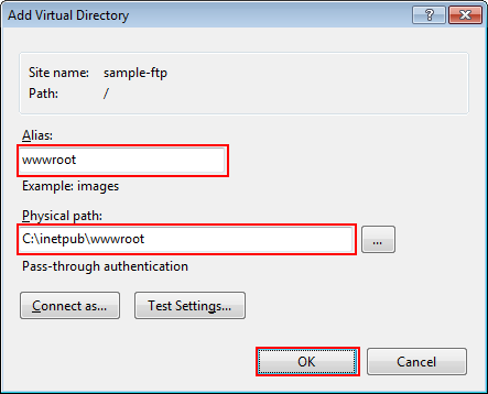 supplementary explanationAdding virtual directory allows to manage the directory of the Web server on FTP.