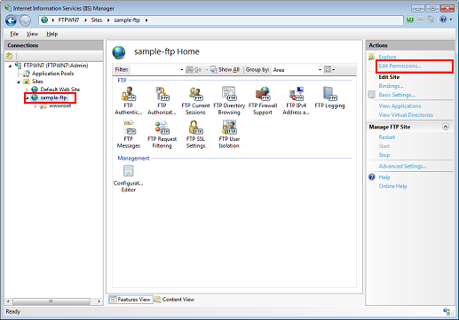 Select the FTP site, and then click Edit Permissions.