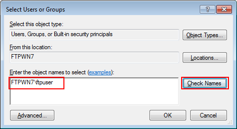 Enter the object names to select | FTPWN7\ftpuser