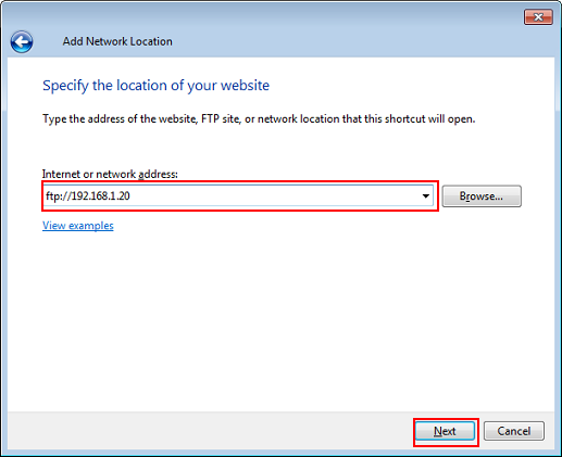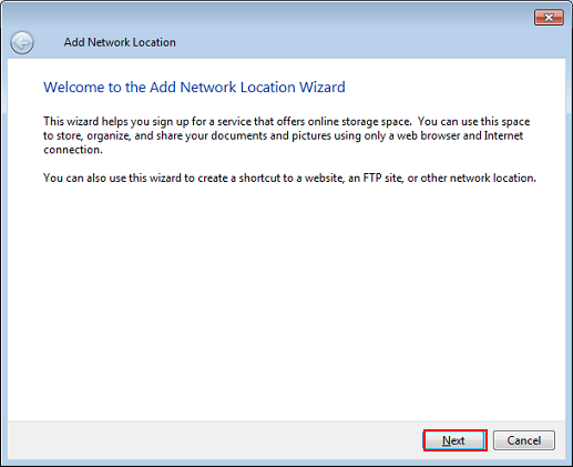 The Add Network Location screen is displayed.