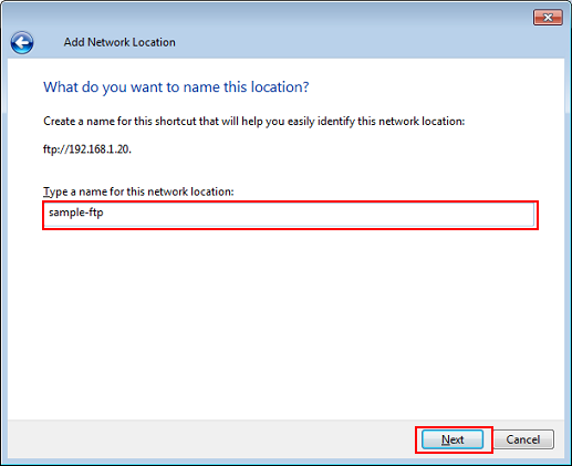 Enter a name for the network location and click Next.