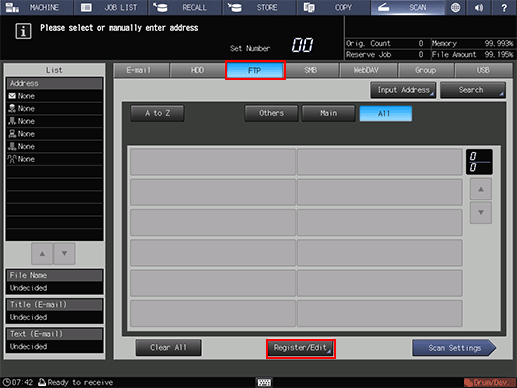 Press FTP and press Register/Edit.