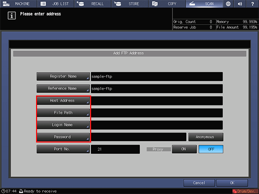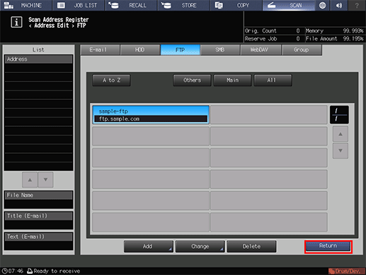 supplementary explanationAfter pressing SCAN, press FTP to display this screen.