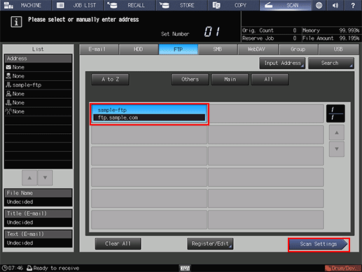 Select the FTP address you registered and press Scan Settings.