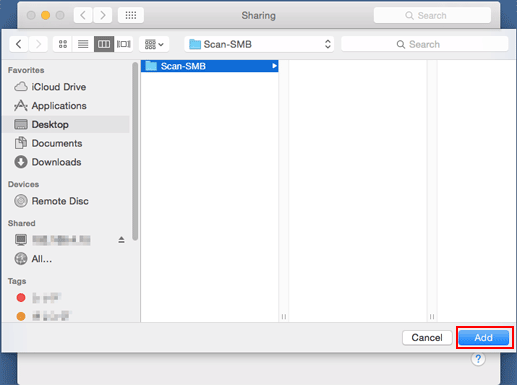 Example: A folder named Scan-SMB is created on the desktop of Macintosh (Mac OS X 10.10).
