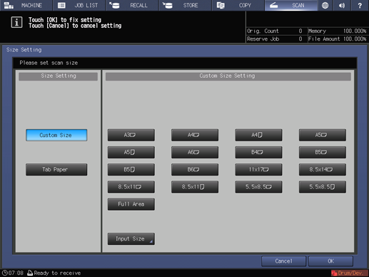 A3short edge feed, A4short edge feed, A4long edge feed, A5short edge feed, A5long edge feed, A6short edge feed, B4short edge feed, B5short edge feed, B5long edge feed, B6short edge feed, Postcard, 11 17short edge feed, 8.5 14short edge feed, 8.5 11short edge feed, 8.5 11long edge feed, 5.5 8.5short edge feed, 5.5 8.5long edge feed, 8 13short edge feed, Full Area