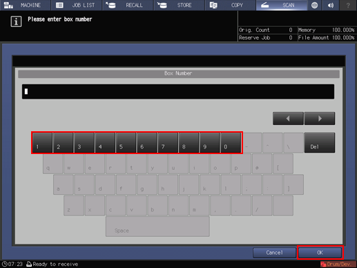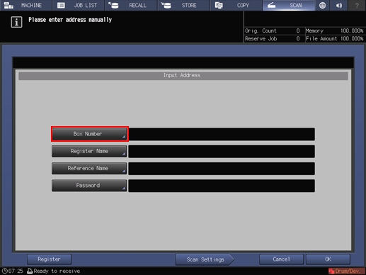 • supplementary explanationInputting a box number that is not registered automatically creates a user box.