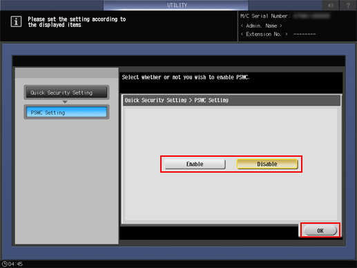 Press PSWC Setting on the Quick Security Setting Menu screen.