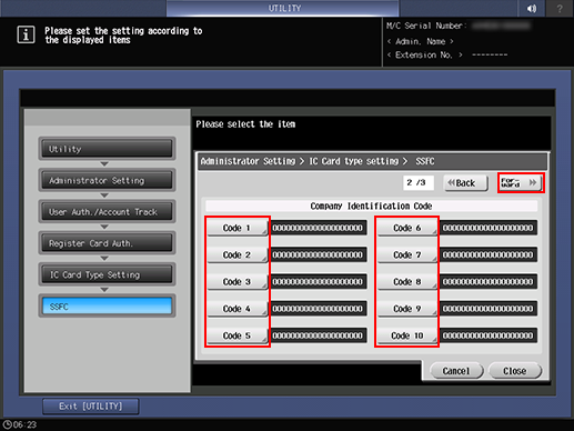 5. Press Code 1 to Code 10 to specify Company Identification Code, and press Forward.