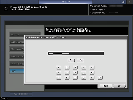 • supplementary explanationTo specify Company Identification Code, press Code 1 to Code 10, type the code using the keypad on the screen that is displayed, and press OK.