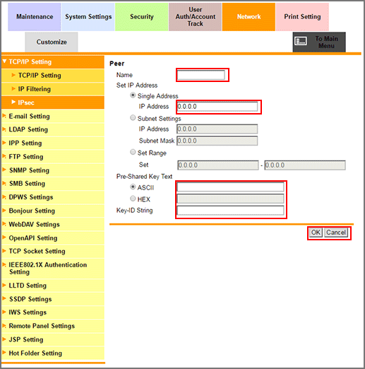 Display the IPsec Setting screen.