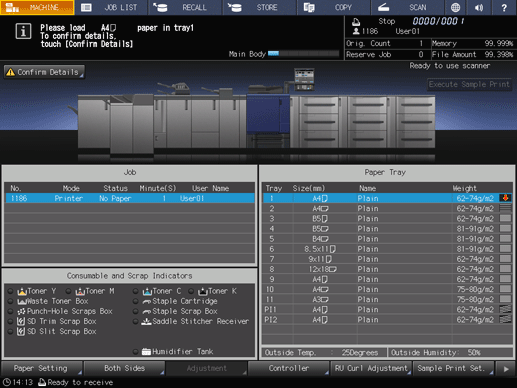 If the specified tray runs out of paper, the machine stops temporarily.