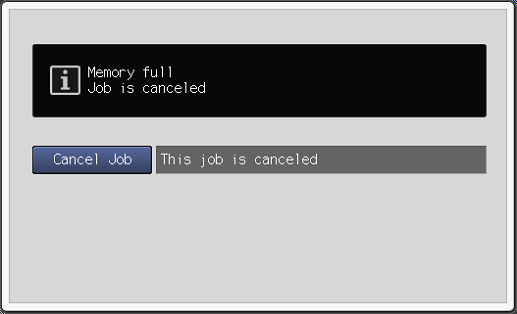 If a memory overflow occurs when scanning the original, the machine stops immediately, and displays the following dialog box.