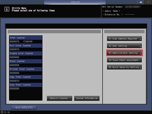 Displaying the Administrator Setting Menu Screen