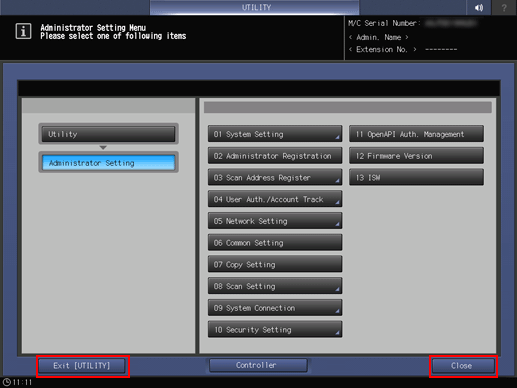 • supplementary explanationTo return through the hierarchy of the Utility menu, press Close until the desired screen appears.