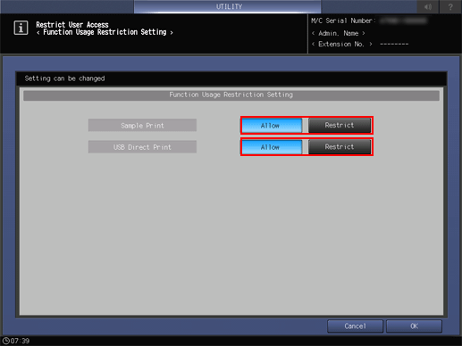 USB Direct Print | Allows or restricts the use of USB direct print function. | |