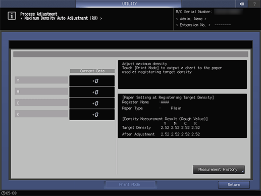 The automatically adjusted result is displayed in Current Data. This value is applied to Maximum Density Adjustment.
