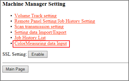 To register colorimetric data in the machine via Web, configure a setting to access to Web Utilities from the computer connected to the machine via the network.