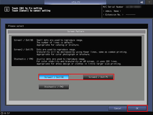 supplementary explanationIf necessary, you can press Screen Pattern to display the Screen Pattern screen and select any screen. Select a screen, and press OK.