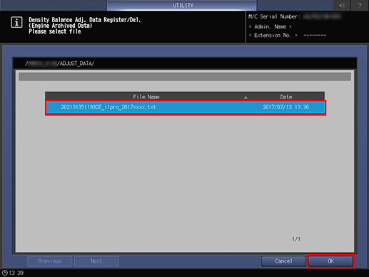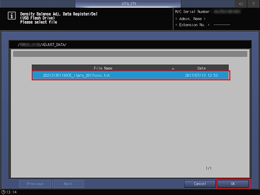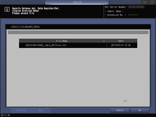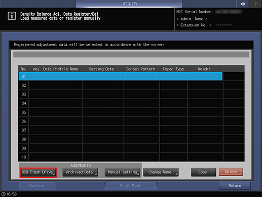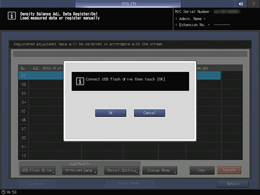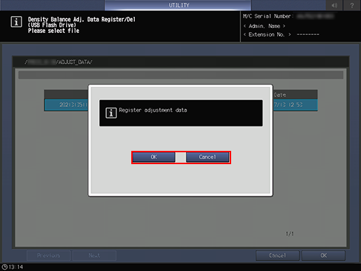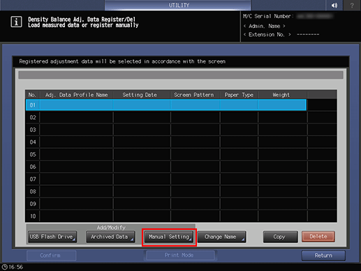 supplementary explanationIf the existing data is selected, the registered density balance adjustment data is displayed.