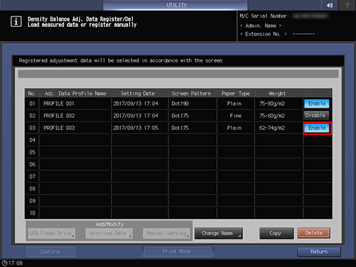 For details about how to set to Enable, refer to Enabling or Disable Density Balance Adjustment Data.