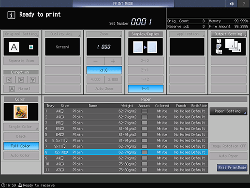 supplementary explanationLoad 12 18 short edge feed, SRA3 short edge feed, 13 19 short edge feed, 11 17 short edge feed, or A3 short edge feed paper in a tray, then select that tray.
