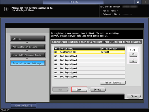 1. Select a line on the External Server Setting screen and press Edit to edit data for the registered external server.