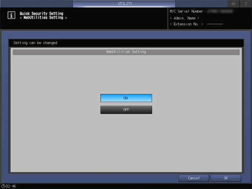 This setting is the same as that of Quick Security Setting - WebUtilities Setting accessed from the UTILITY screen.