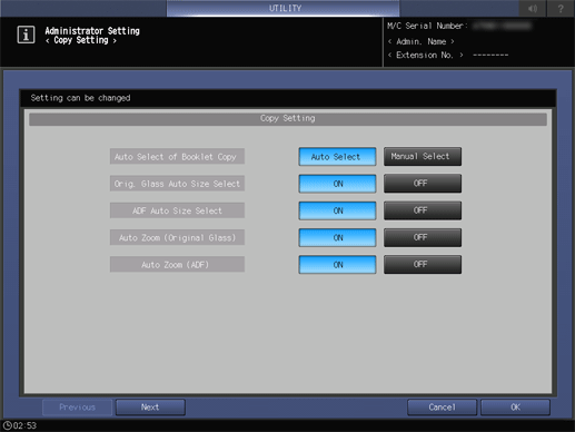 The following features can be provided by switching the selection. This setting can also be performed by selecting Copy Setting from the User Setting.