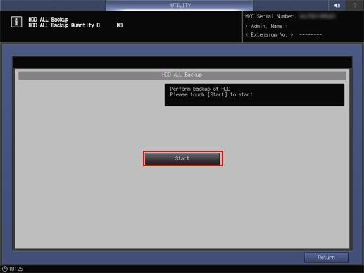 • supplementary explanationPress Start on the screen to initiate the operation to back up all data on the HDD.