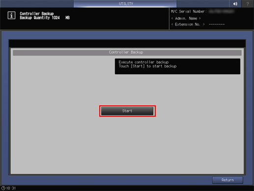 • supplementary explanationPress Start on the screen to start the back-up of settings data stored in Image Controller IC-605.