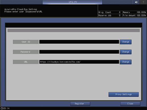 URL | You can enter up to 255 one-byte characters. (Default: https://cloudeye.konicaminolta.com/) | |