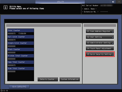 If the Administrator Password screen is displayed, enter the administrator password using 8 to 64 one-byte characters, then press OK.