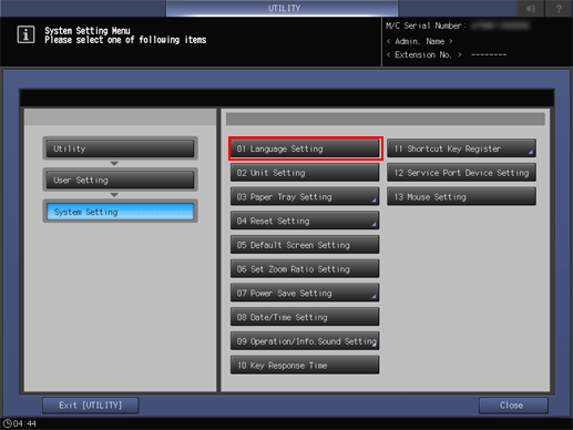 Press System Setting on the User Setting Menu screen, and then press Language Setting.