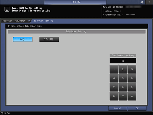 Selecting Tab Paper displays the Tab Paper Setting screen.