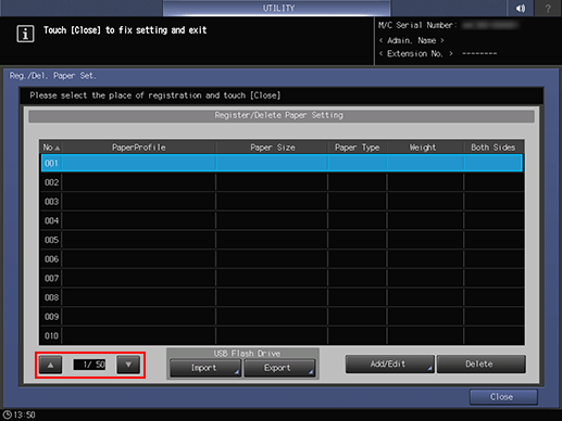 You can also register paper profiles using Reg./Del. PaperSet. on the MACHINE screen. For details, refer to Registering a Paper Profile on the Register/Delete Paper Setting Screen.