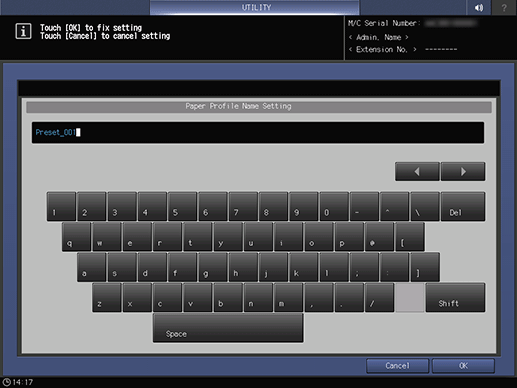supplementary explanationEnter the desired paper profile name. You can enter up to 50 one-byte characters (25 two-byte characters).