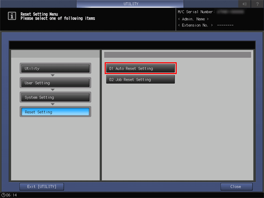 Press System Setting on the User Setting Menu screen, and then press Reset Setting and Auto Reset Setting in sequence.
